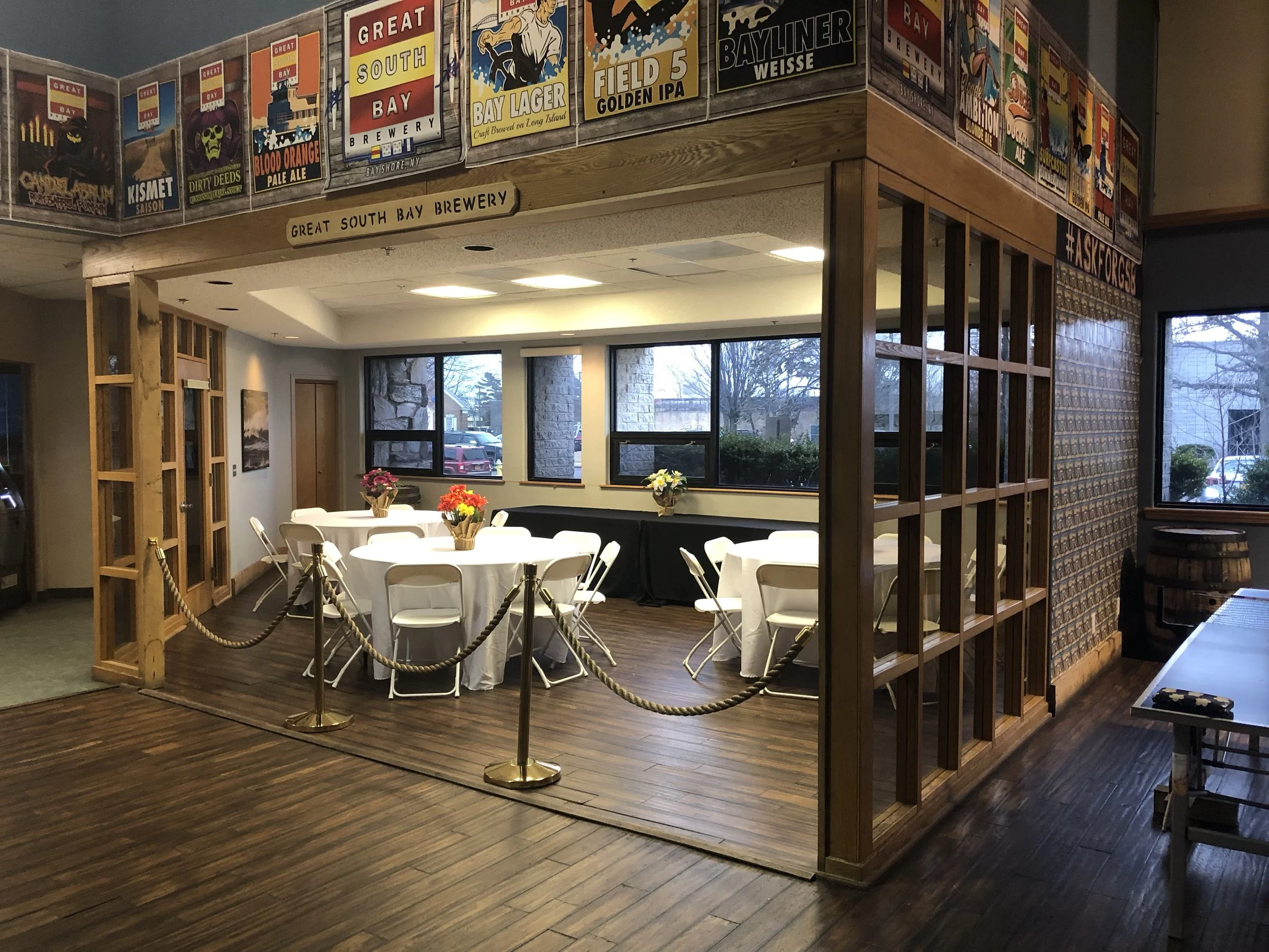 We have 4 different party rooms to choose from - all varying in size and accommodations!Choose from our: Jetty Ale Room, the Blonde Ambition Room, the Massive IPA Hall, and Ghost Brewery Taproom!All of our room rentals are for 4-hours giving you plenty of time to try everything we have to offer!